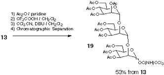 15. The glycosylation can be performed in a nearly identical efficiency by using corresponding methylthioglycoside 3 as an acceptor.
