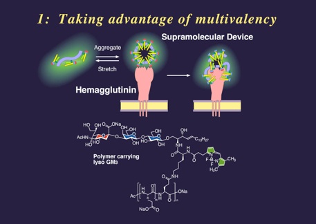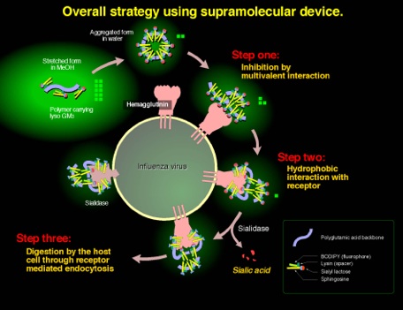 It is expected that the polymeric supramolecule might also act on sialidase as well in a same manner, and the effect might persist even after some or complete hydrolysis of sialic acid residues if it occurs after the binding.