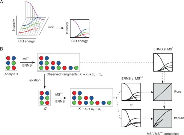 What are you going to do when the sample you are analyzing on mass spectrometry contains impurity with same m/z value? Fears about the potential problems associated to the contaminated structural isomers such as diastereomers and sequential isomers in your sample always exist. The presence of these isomeric structures cannot be identified by the method based on mass spectrometry. But, this is no longer true. Based on the new method called "stage-discriminated correlation" tells you whether a sample is "pure" or not. (Ref. 1)